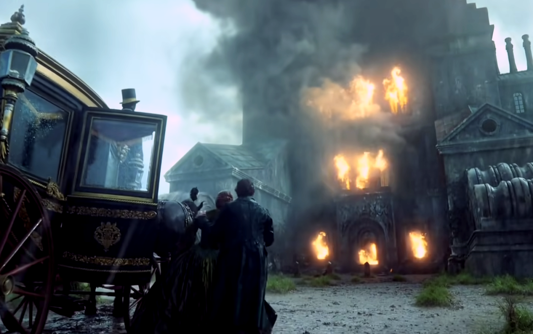 △ 维克托烧毁了试验的庄园,试图让怪物在火中丧生