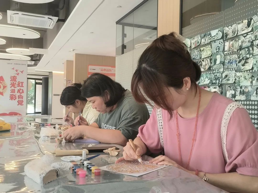 6月27日,在“滨创益+”综合服务阵地,“益启学”非遗助困公益项目之玻璃画手作体验活动顺利举行。10余位青年志愿者创作出红船、红心、红旗等红色主题作品,为党的生日献上这份特殊的礼物。