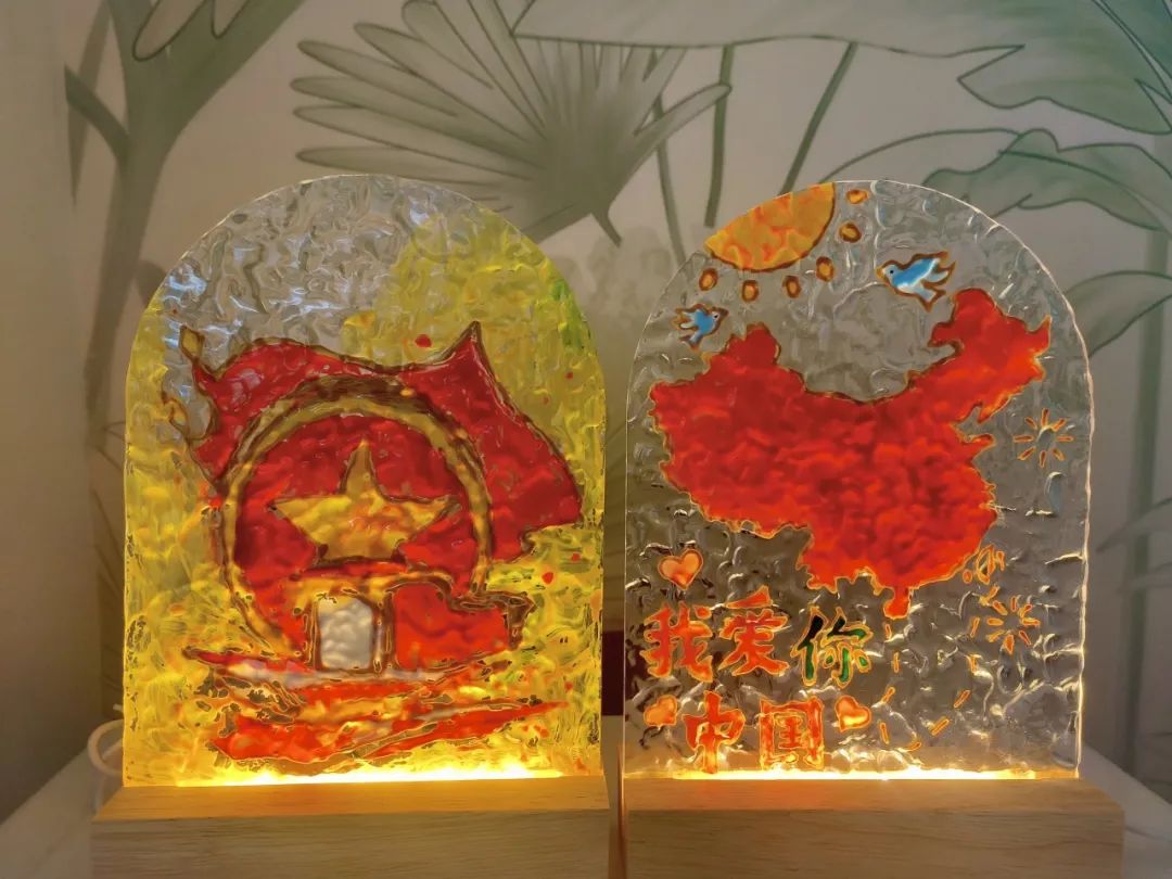 这些承载着祝福的玻璃画作品将被公益捐赠,所得善款用于困难群众帮扶。这场将非遗技艺与红色文化融合的手工活动,不仅让传统工艺焕发新活力,更让爱党爱国情怀在光影交错中薪火相传。