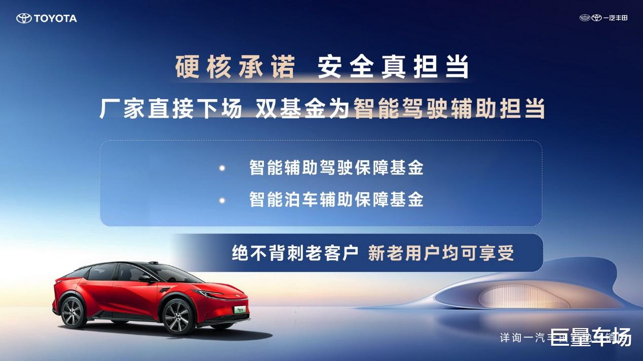 直播中,针对全新bZ5,一汽丰田推出重磅新政策:动力电池故障,免费换新电池;动力电池衰减异常,免费换新电池;动力电池起火、自燃,免费换新车;同时设立智能辅助驾驶和智能辅助泊车双基金,让用户尽享美好智能出行。值得一提的是以上政策,新老用户共享。对用户而言,开bZ5更安心,对一汽丰田而言,这一堪称行业新高度的安全兜底政策,既展示了一个大厂应有的担当,更彰显了对28年电动化历史、3000万电动化销量、电池0事故的丰田血脉的绝对自信。