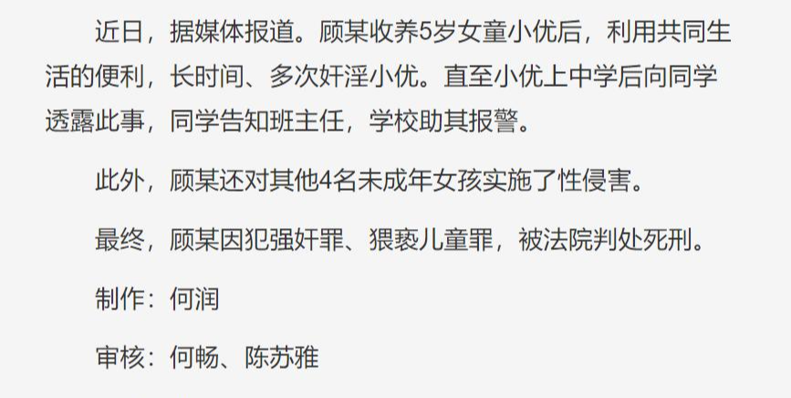 顾某甚至还给小优看不良视频,教她“这是正常的”,一步步把她拖进更深的黑暗。