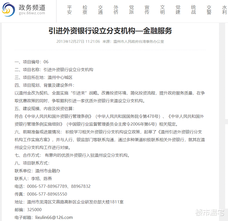 其实早在2012年,温州获批金融综合改革试验区,《浙江省温州市金融综合改革试验区总体方案》中就曾提到“争取引进1家以上优质外资银行分支机构”。