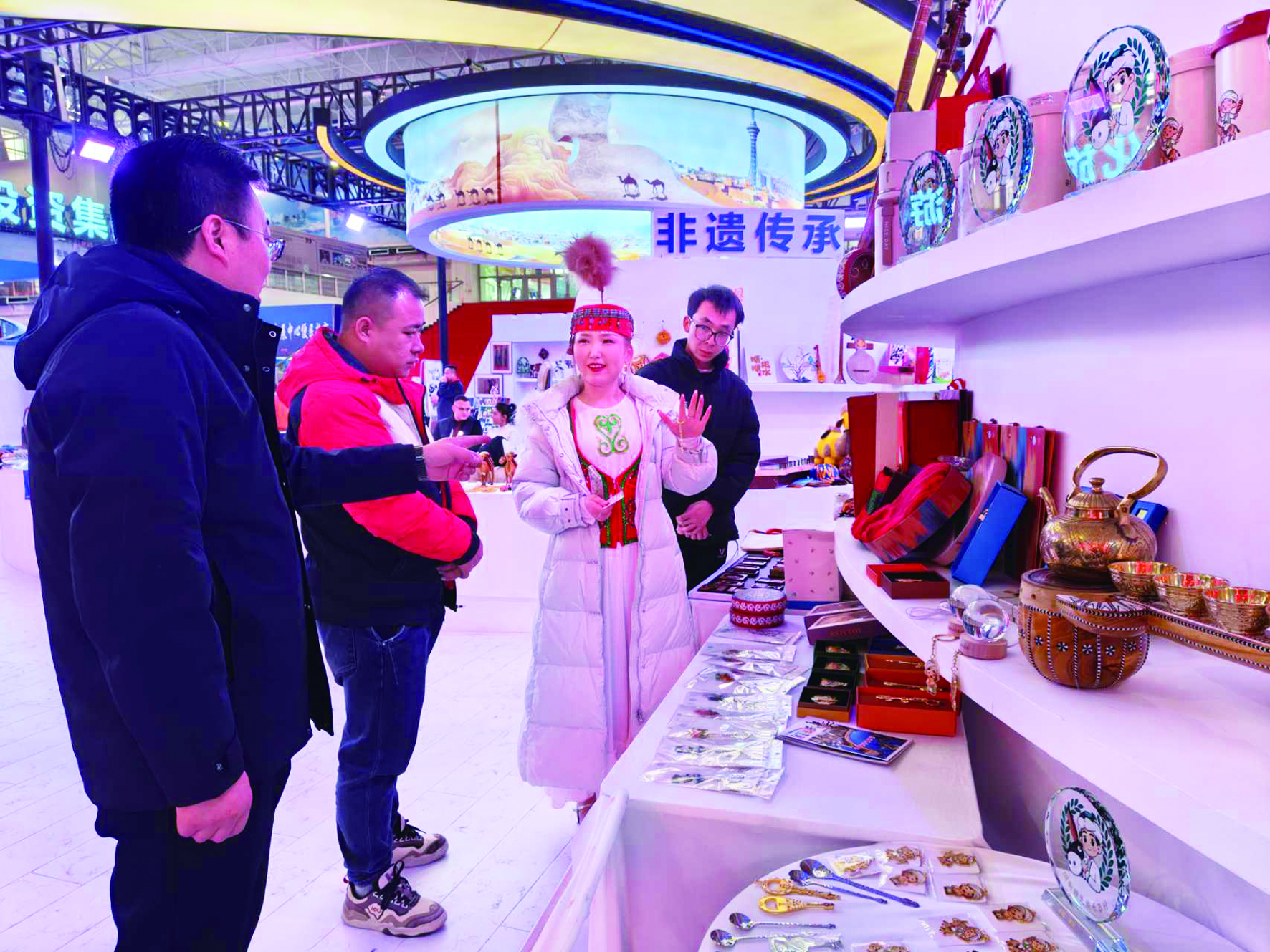 疏附县展位上,热瓦普、都塔尔等传统乐器不再仅仅是演奏的工具,它们的形态被巧妙转化为兼具实用与美感的茶桌、餐具,让人眼前一亮。“我们以乐器为形,挖掘茶文化内涵,打造了系列乐器文创产品。”喀什市徕宁文化旅游有限公司疏附县分公司总经理孙小伟说。