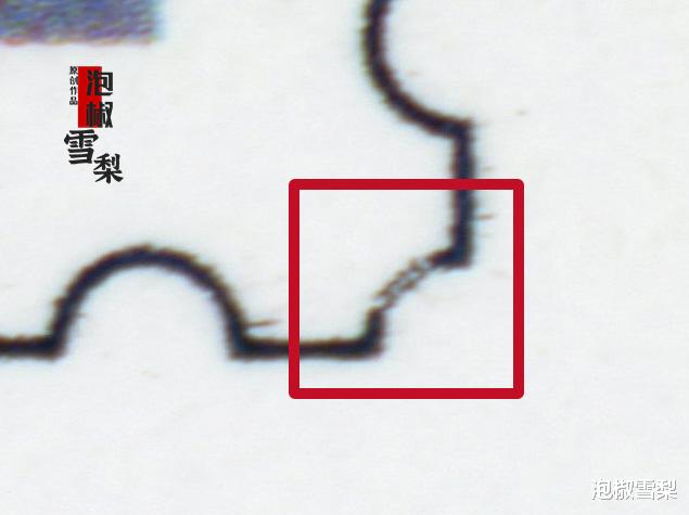 其次常见的缩微文字防伪,在明信片上也有多处运用,尤其是写地址的横线,泡椒雪梨在直接观察时丝毫未发现其为字母,只在放大观察时无意间发现了其真身。