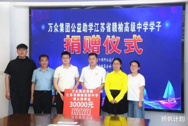 6月10日,江苏万众集团联合思源·新浪扬帆公益基金,在江苏省赣榆高级中学共同举办温情满满的爱心助学捐赠仪式。活动聚焦困境学子成长需求,以实际行动传递社会温暖,为10名品学兼优但家庭经济困难的学生送上3万元爱心助学金,助力他们安心逐梦求学路。
