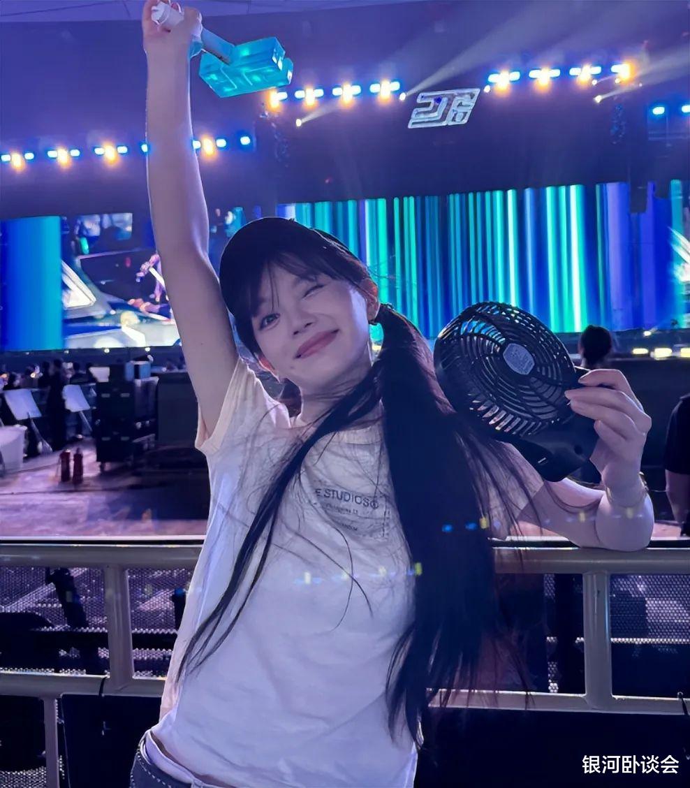 梳着双马尾,戴着鸭舌帽,整个人元气满满,看起来很是兴奋。