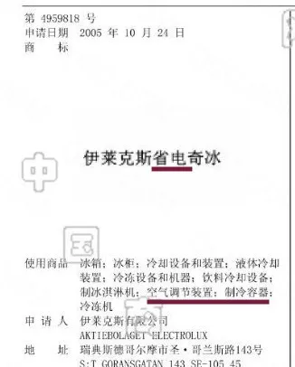 二十年前,伊莱克斯就在空调冰箱等电器商品上申请了“伊莱克斯省电奇冰”商标,核准注册,至今有效。