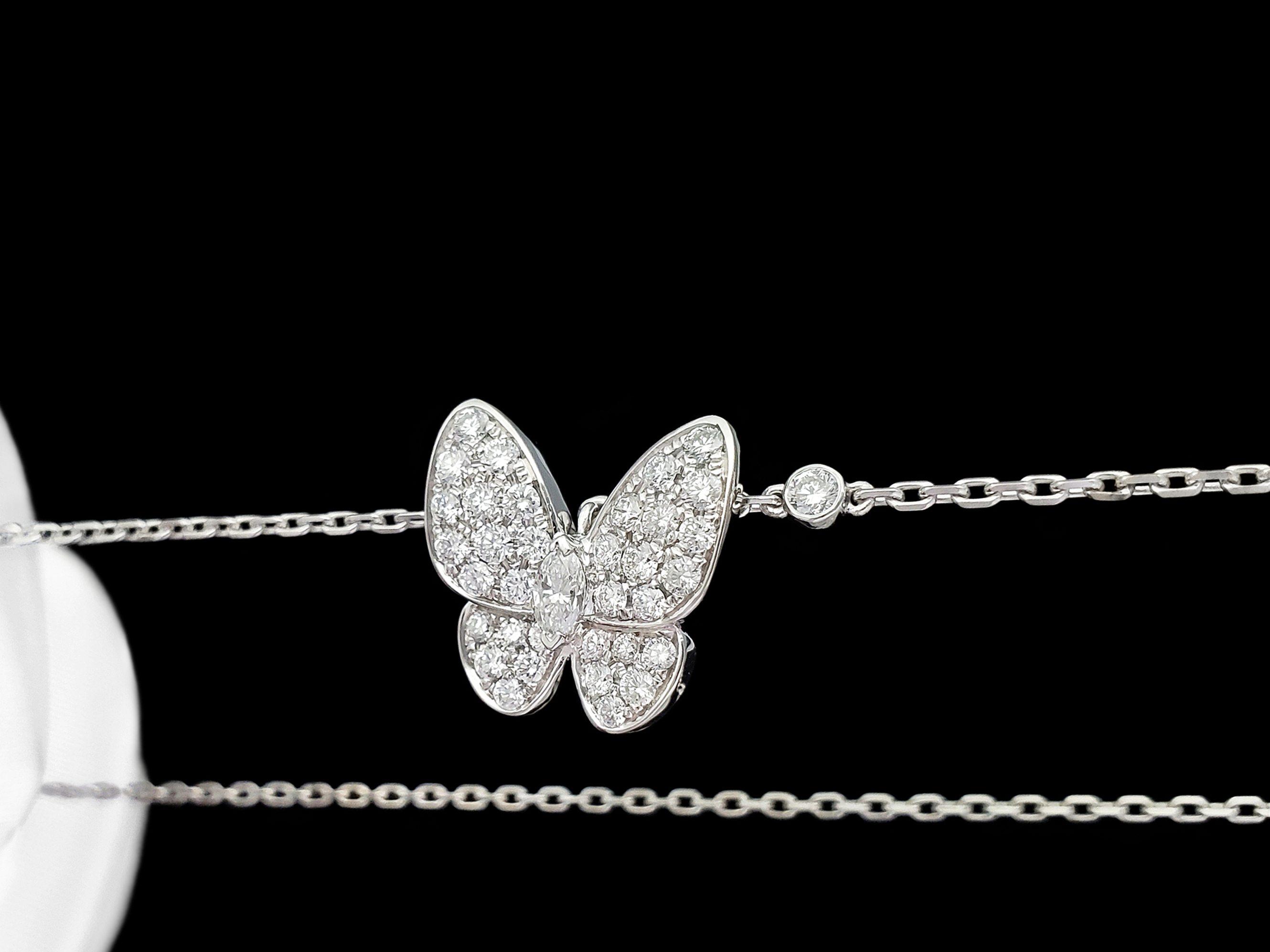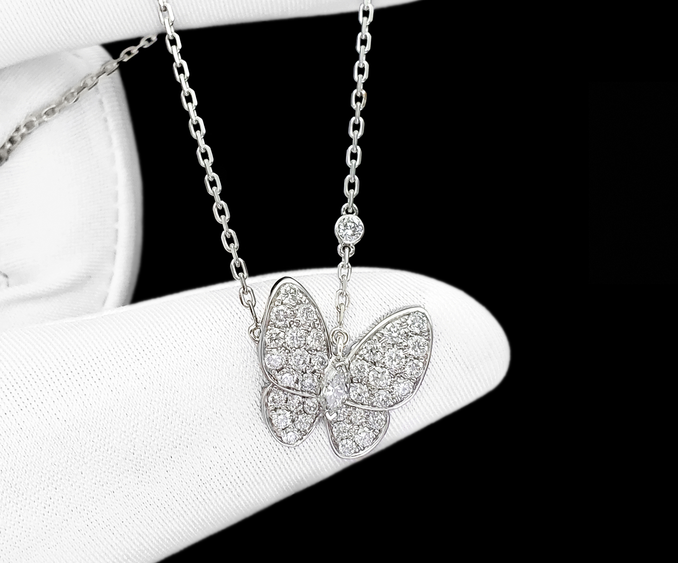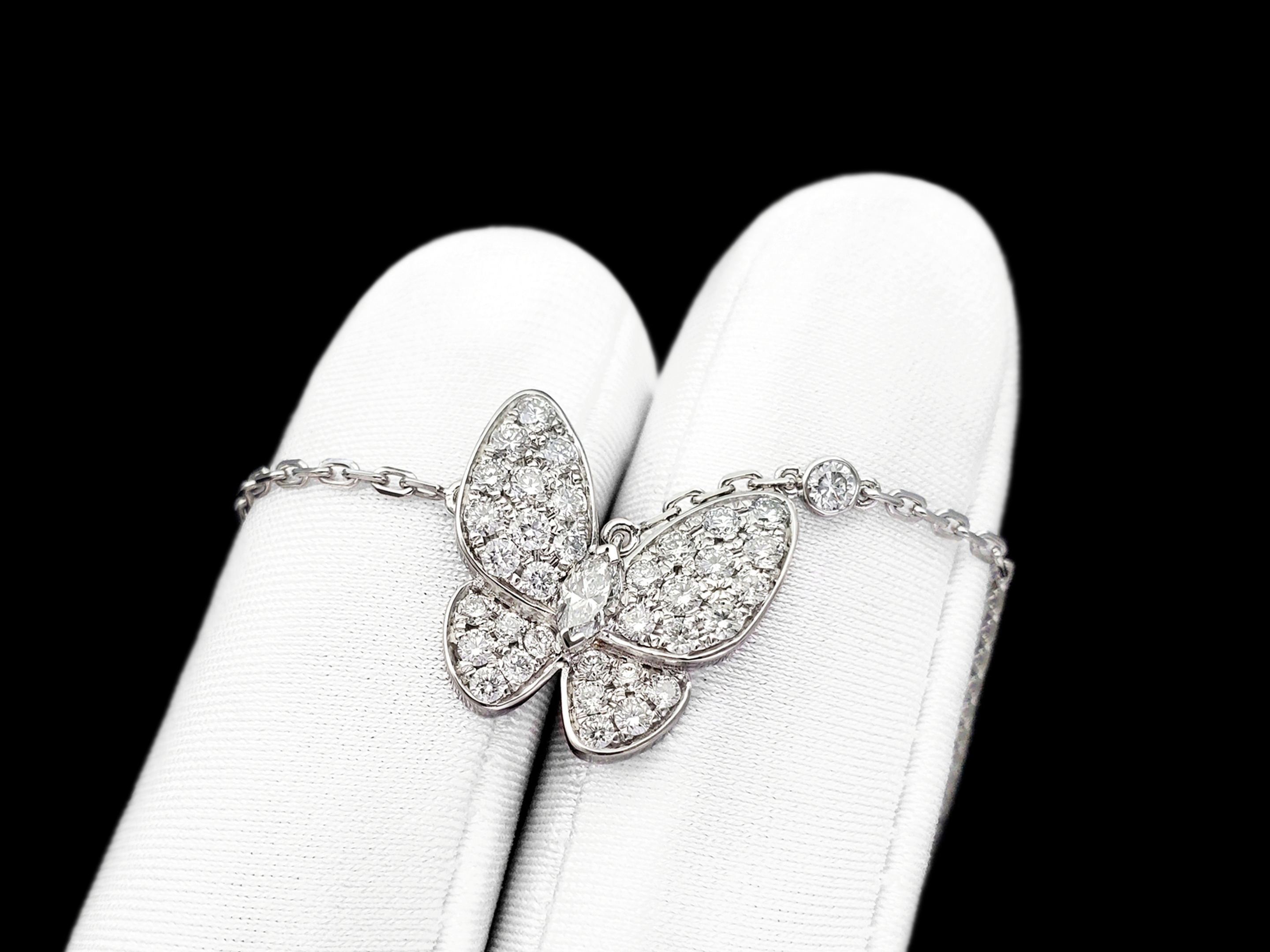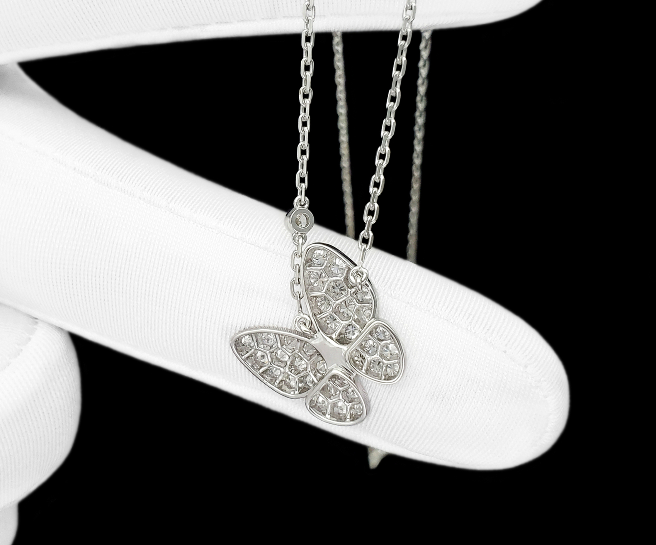 VCA梵克雅宝Two Butterfly系列18K白金满镶钻石蝴蝶项链