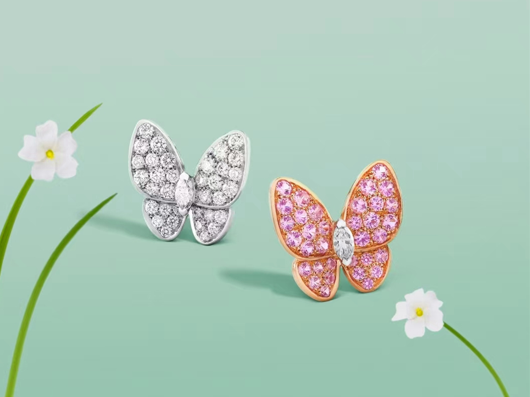 梵克雅宝的设计理念始终与春日里的盎然生机紧密相连,蝴蝶可谓品牌方优雅与诗意的重要灵感源泉。早在上世纪20年代,世家便以蝴蝶形象制作了胸针、耳环等精美佳作。到了1930年,其将独创的Mystery Setting工艺应用在了诸多蝴蝶主题之中,塑造出无数翩翩摇曳的蝶翼形态。进入新世纪后,Two Butterfly家族在时代的潮流中应运而生,作为面向大众级别的珠宝系列,它以多彩的宝石持续焕新,延续着品牌与蝴蝶间跨越百年的浪漫传奇。