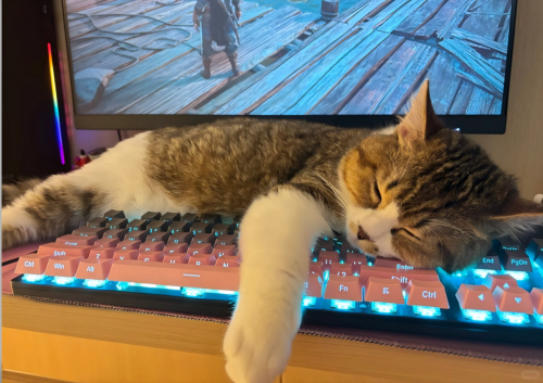 养猫的朋友谁没经历过这种窒息瞬间?赶工赶到半夜,眼睛都快粘在屏幕上了,好不容易捋顺思路敲完半页字,低头一看——好家伙,我家那位“主子”正四仰八叉地瘫在键盘上。或者玩游戏时尾巴绕着回车键打了个结,粉肉垫精准按住删除键,小肚皮随着呼噜声一鼓一鼓,哪怕我急得戳鼠标,它顶多掀掀眼皮,一副“朕占了就归我”的嚣张样。