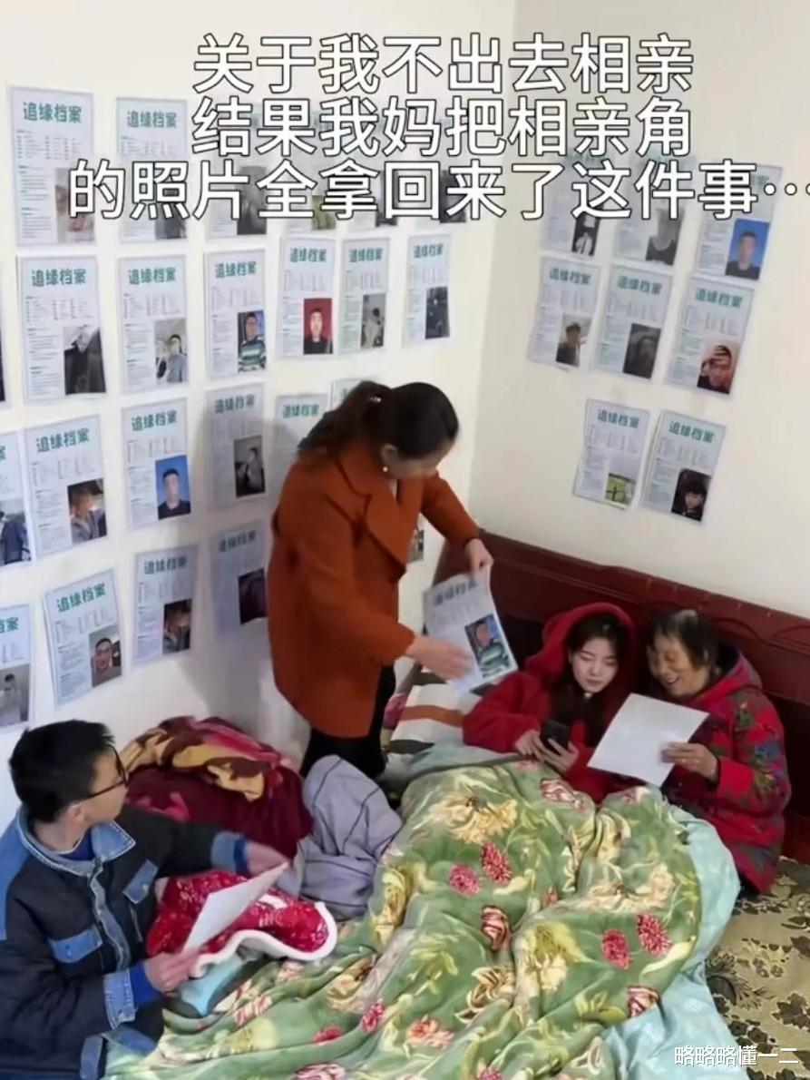 妈妈见女生不出去相亲,结果把相亲角的照片都拿回来了贴在女生房间的墙上,这招太狠了,这回真是“低头不见抬头见”,总能看到这些照片了,让人哭笑不得。