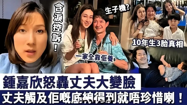 婚后的钟嘉欣几乎淡出娱乐圈,全身心投入家庭,先后生下两女一子,五年抱三,凑成五口之家。