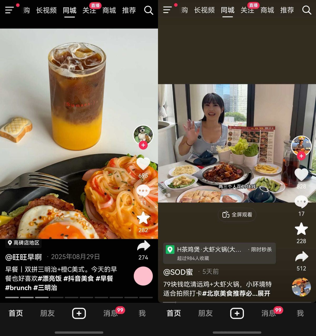 同城页面和团购的升级应该是本次假期最有用的功能了。点进去,附近的热门内容、优惠团购和好玩的地方一目了然。想找个新馆子尝尝?可以从抖音里刷刷看看看有没有特别划算的团购,看中了直接下单,像我这种“既要又要”,想玩也想省钱的真的很需要这个功能。或者直接在“团购搜索”,附近的优惠套餐、销量排行、用户评价全出来,看中了直接下单,不用跳转其他平台。