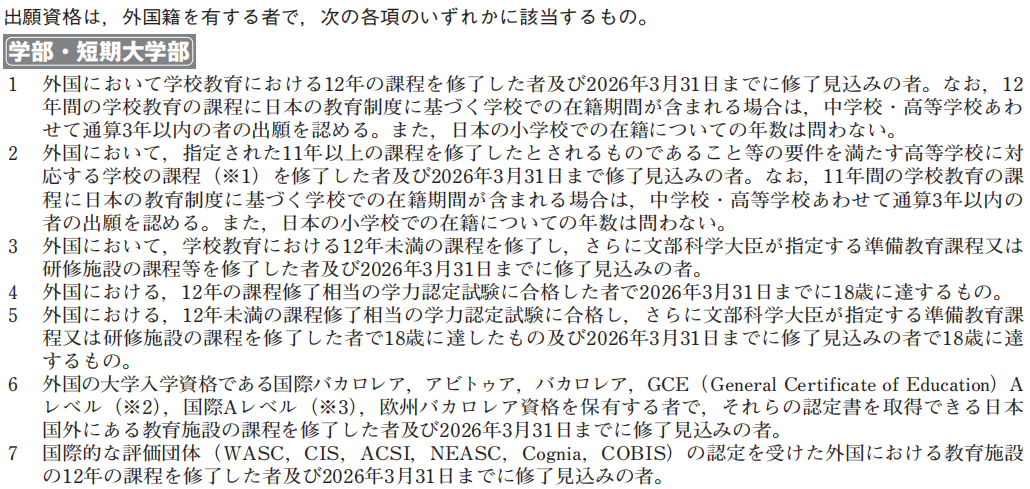 1.非日本国籍者2.完成12年教育经历者或预计2026年3月31日前完成者