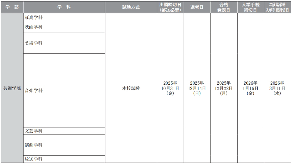 艺术学部需要进行实技考试、小论文和面试判定,各学科实技考试内容如下: