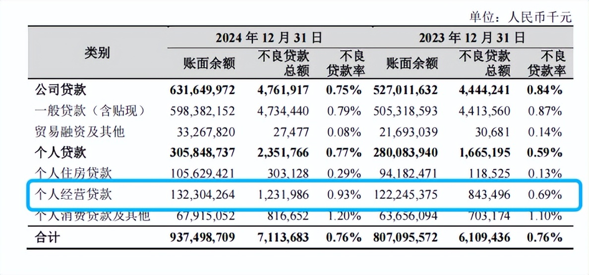 不过,在资产质量方面,杭州银行个人贷款不良率显著攀升。2023年个人贷款不良率为0.59%,2024年已涨至0.77%。细分来看,个人经营性贷款不良率从0.69%跃升至0.93%,消费贷款不良率也从1.10%微涨至1.20%。同时,关注类贷款迁徙率从2023年的42.49%升至2024年的49.79%,意味着大量关注类贷款未来有可能沦为不良贷款。