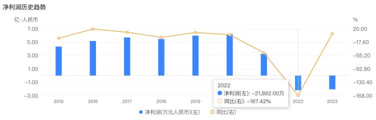 杭州工商信托2015-2023年净利润趋势,图自:企业预警通