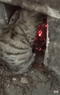 一会猫咪一半的毛估计都要烤焦了吧哈哈!