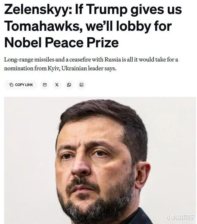 这个提议的内容非常简单直接:乌克兰方面可以提名特朗普角逐诺贝尔和平奖,条件是美国必须向乌克兰提供“战斧”巡航导弹。这笔交易,将崇高的和平荣誉与致命的军事援助直接画上了等号。