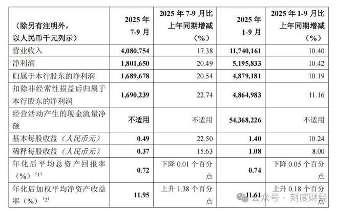 10月24日晚间,重庆银行发布2025年第三季度报告,7月至9月,该行实现营业收入40.81亿元,同比增长17.38%;实现净利润18.02亿元,同比增长20.49%。