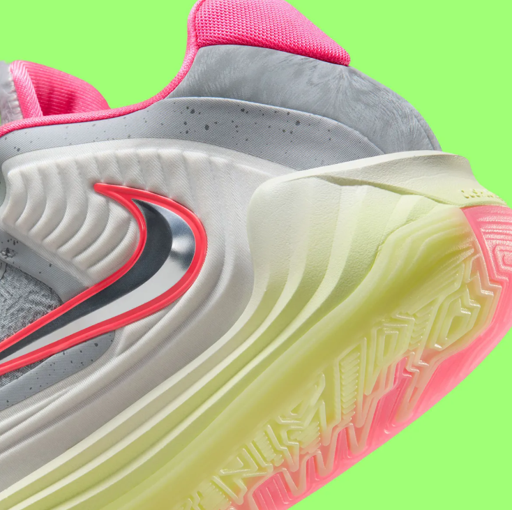 除此之外,鞋履还采用了粉色进行点缀,似乎加强了鞋履的“甜美感”,但是实际上给人的视觉冲击非常大,不仅不甜美,还增加了鞋履的Halloween节日元素,充满十足的怪异风味,非常契合鞋履的主题。这种夸张的反差感,在Nike Giannis Freak上确实是很难见到的。