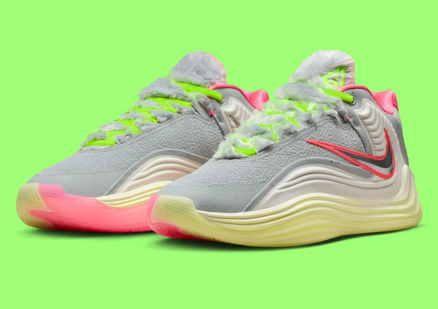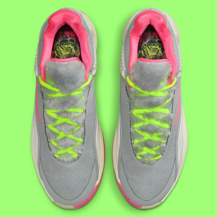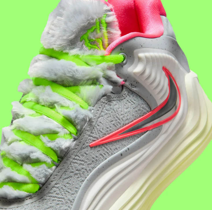 本文给大家带来的便是Nike Giannis Freak 7即将发售的全新配色——「Halloween」,鞋履灵感来源于“Shapeshift”,意为变形,鞋履的风格就像是一个毛茸茸的狼人开始变形为球鞋一般,可爱的灰色绒毛搭配上绿色元素,可爱中带有一丝丝怪异,设计感很不错,相比于之前的一些调色盘配色算是大突破。