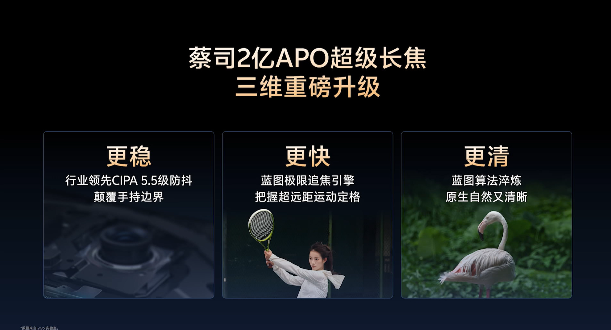 该系列采用了全新的长焦抓拍系统架构,其**蓝图极限追焦引擎**在自研X-Track追焦算法基础上,结合专门服务的影像超能效NPU,使追焦稳定性提升超过200%。