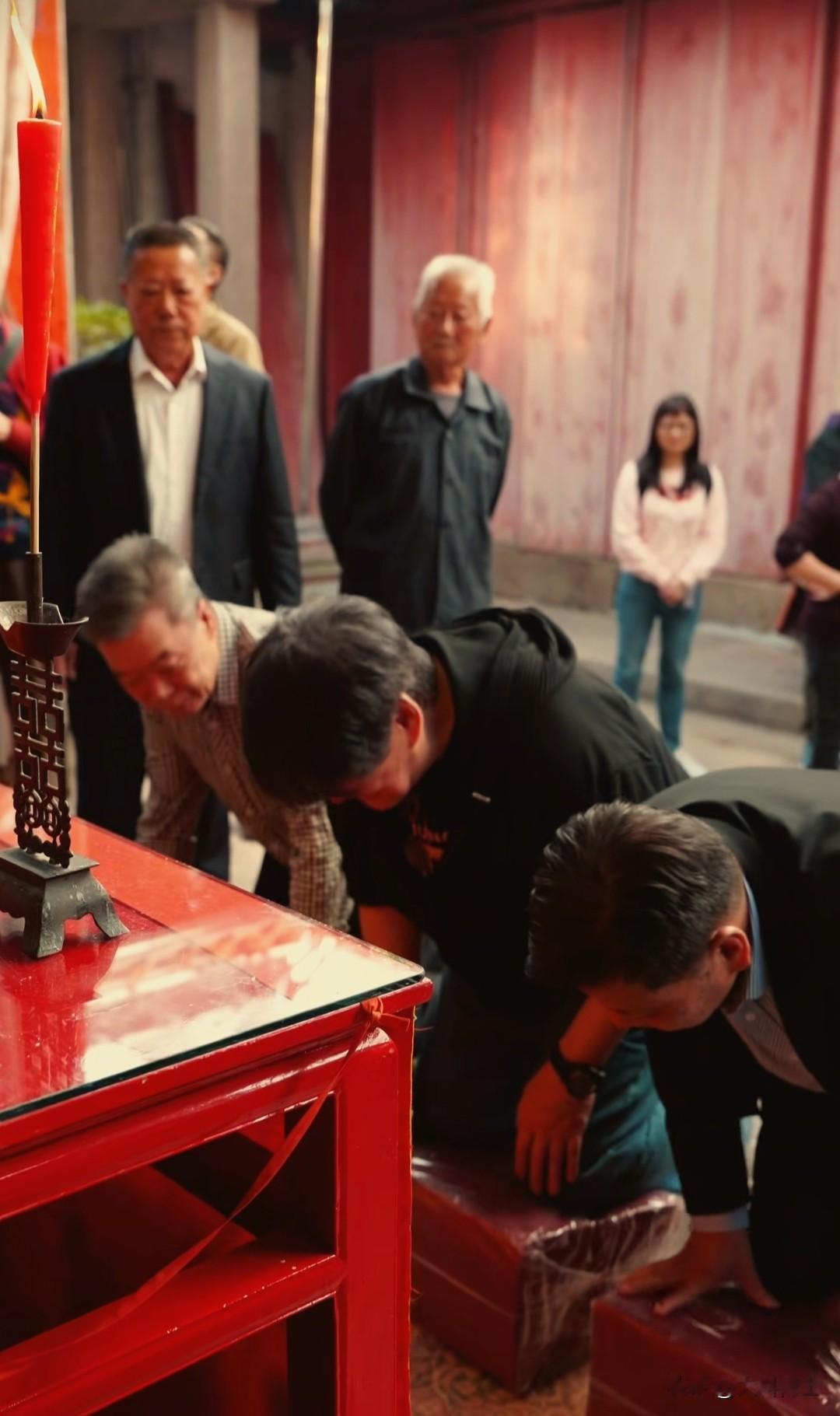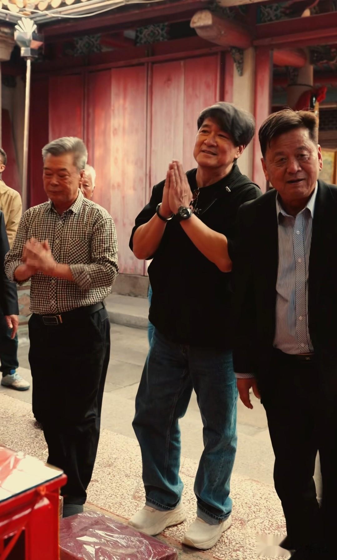周华健很接地气儿,祭拜宗祠完全按照当地习俗,身旁两名同族跪地、磕头,他也跟着下跪磕头,一点没有明星架子。