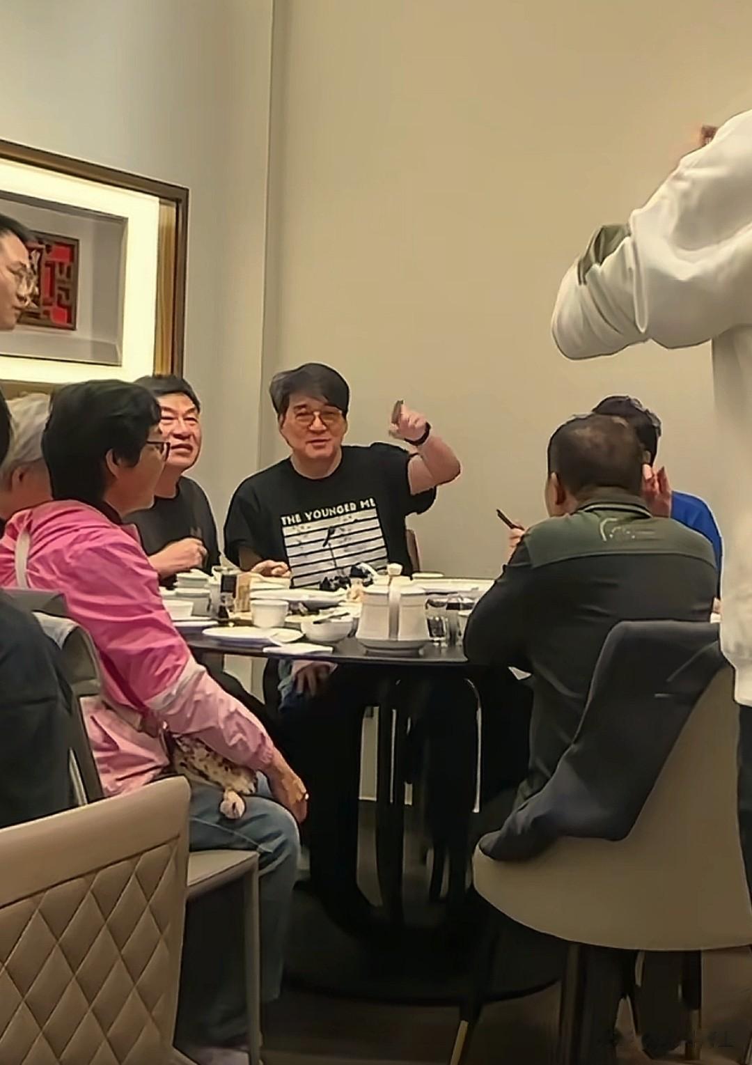 周华健也是60多岁的老人了,饭桌上,宗亲安排座位时把他请到餐厅最里面的长辈主座,于是周华健和宗亲里的老辈子们坐在了一桌。