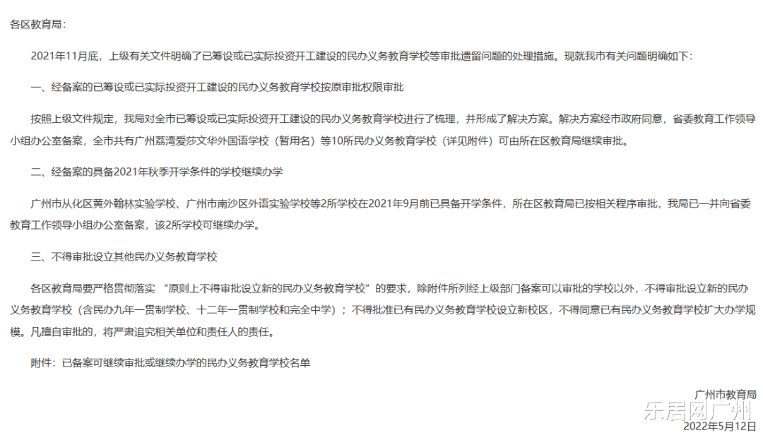 近日,广州市教育局发布关于明确民办义务教育学校审批遗留问题的通知,当中强调了三点: