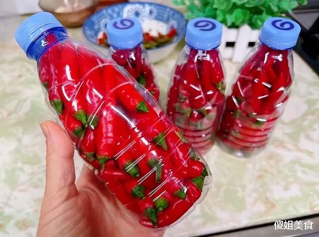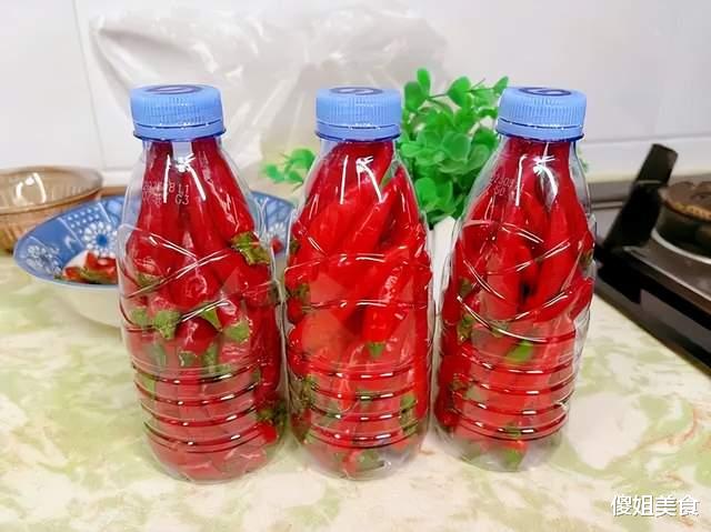 对了,装瓶的时候别装太满,留点空间,还有啊,可以在瓶子上贴个标签,写上日期,这样就不会忘记存放时间了。现在正是小米辣最便宜的时候,趁着价格美丽,多买些存起来吧,等到冬天辣椒涨价的时候,你就能偷着乐了。