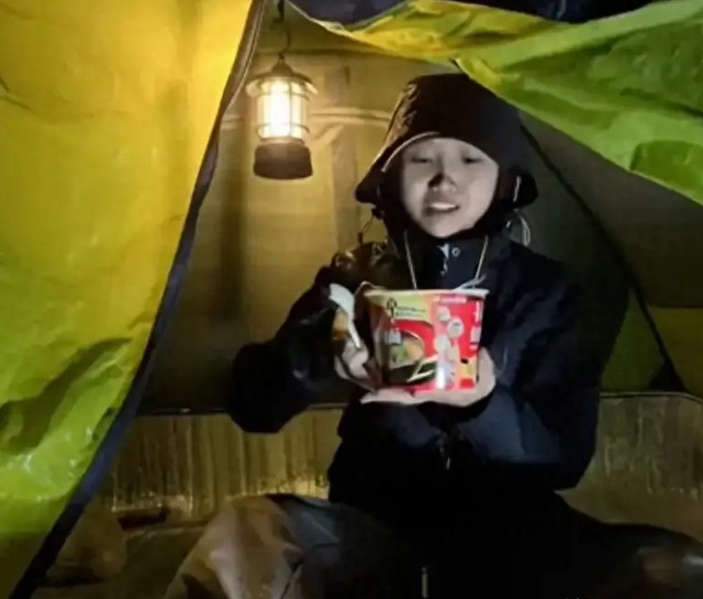 看着外面漆黑如墨的夜色,再伴随着不知名动物的叫声,帐篷内的陈朵朵居然丝毫不感到害怕,还从背包里拿出来了一桶泡面,看到这儿真是不得不佩服这姑娘的勇气啊。