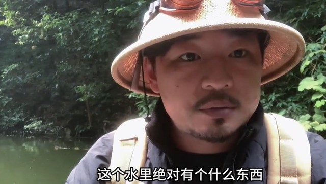 他坐在船上,显得惴惴不安,并担忧地对着摄像机表示:这个水里绝对有个什么东西,而且不是鱼。