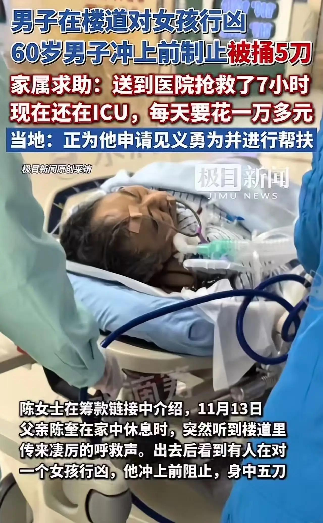 怒赞!重庆六旬大爷勇斗持刀歹徒被捅5刀,ICU每日万元治疗费难住家人,网友:不能让好人寒心!