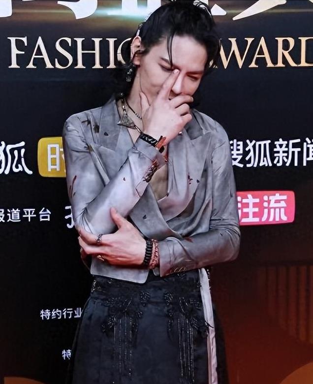 向佐的两套裙装造型则成为了当晚的“显眼包”,黑色蕾丝女士内搭和马面裙的搭配,让人摸不着头脑,甚至被调侃像“卖菜大妈”。