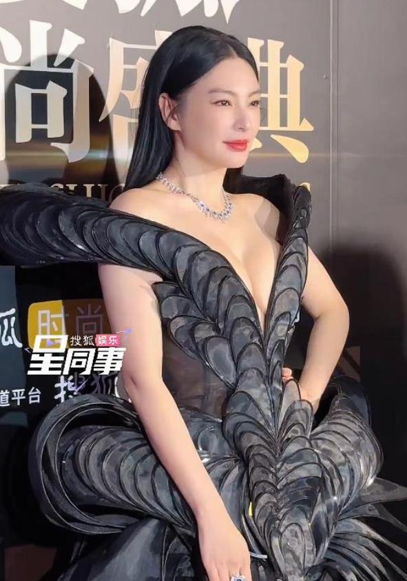 红毯上,她以一袭深V黑色蝴蝶礼服亮相,性感火辣,极具视觉冲击力,但却被一些网友批评过于夸张,甚至有点“黑魔仙”的既视感。