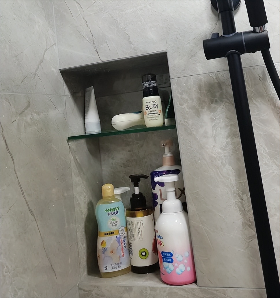 壁龛是利用了卫生间墙面空间打造出来的储物格,用来去收纳常用的洗漱物品和清洁物品,从效果来看颜值的确很不错,可装的时候会发现太鸡肋了。