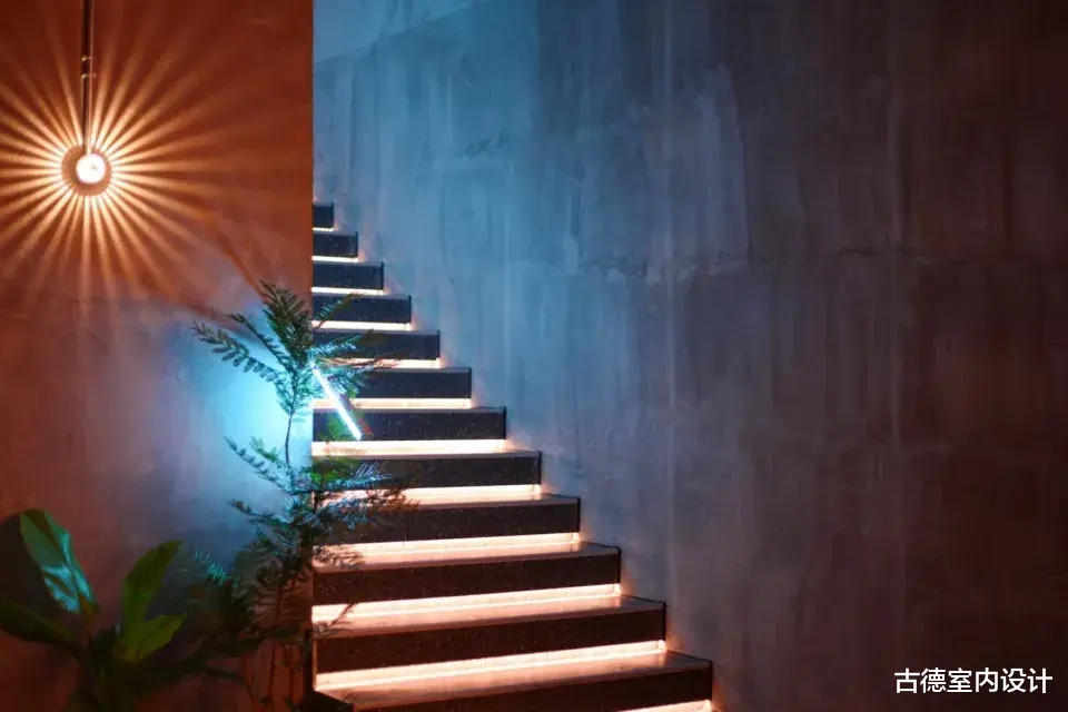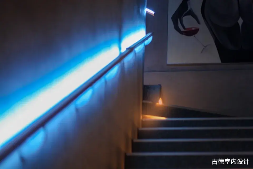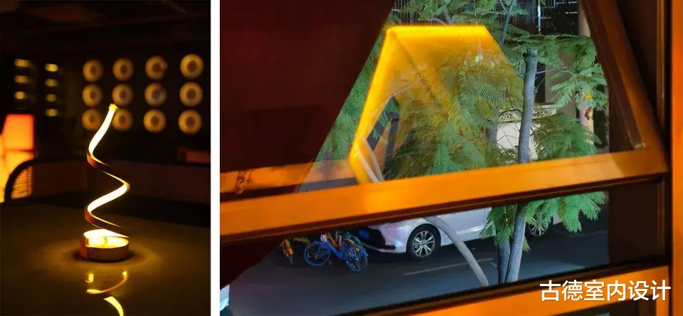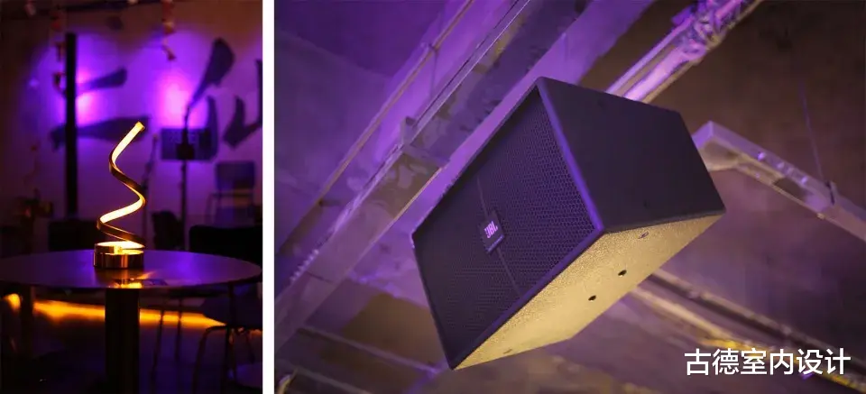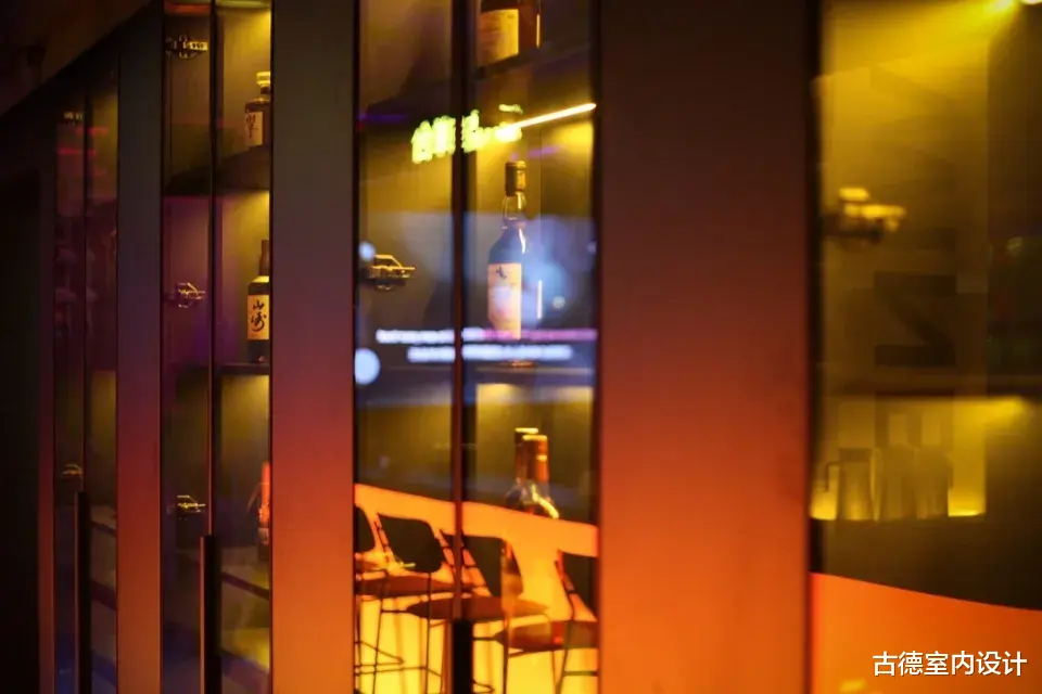▲一楼灯具和音响细节© 陈灏舟、冼科吉有意义的生活,也需要无意义的调剂设计团队从业主的角度去考虑经济问题,我们在策划阶段在一楼临街面设置了外摆区和外送区,并且建议业主在一楼的定价应该与二楼区分开来,一楼主要以聚人气和性价比消费为主。在通过角落里的楼梯来到二楼之后,绝对纯粹的酒吧场景才在顾客的眼前真正的展开——当夜幕降临,只有灯光可以照亮和重塑空间,二楼是LIKE BAR的高消费场所,拉丝铝板装置上赫然亮着橙红色的LIKE CLUB的灯箱,旁边装满威士忌的酒柜也凸显着这里的不同。