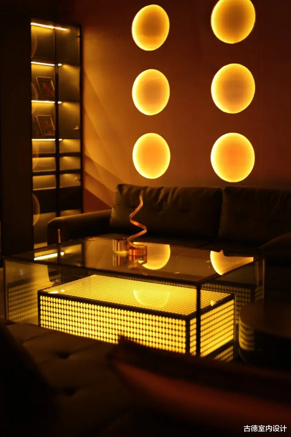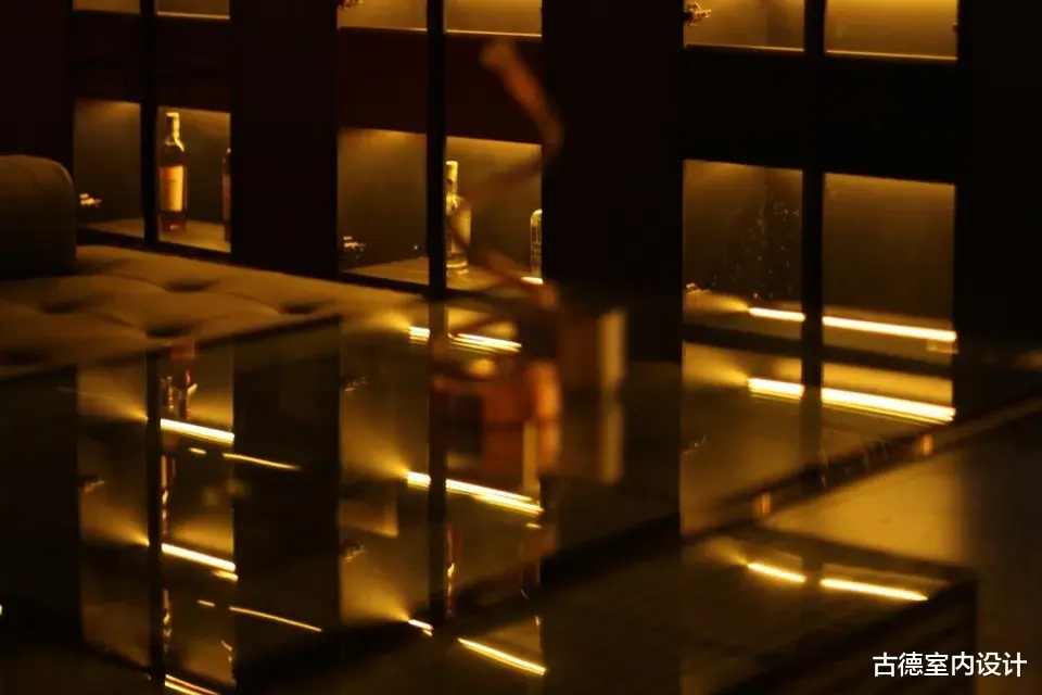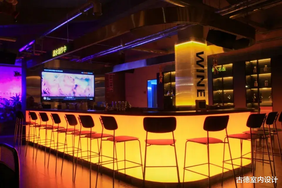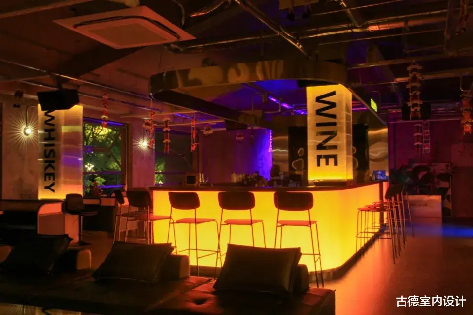 ▲一楼吧台近景© 陈灏舟、冼科吉如果顾客既想享受舞台歌手带来的喧嚣,又想与相对嘈杂的人群保持一定距离,那么角落里的卡座在红色软膜灯光的照射下便分外的独具一格,顾客在这里既可以欣赏舞台的演出,又相对不受打扰,同时软膜散射下的红光将整个区域笼罩,无形中既增加了一定的边界感私密感,又增添了些许暧昧、迷幻的气息。