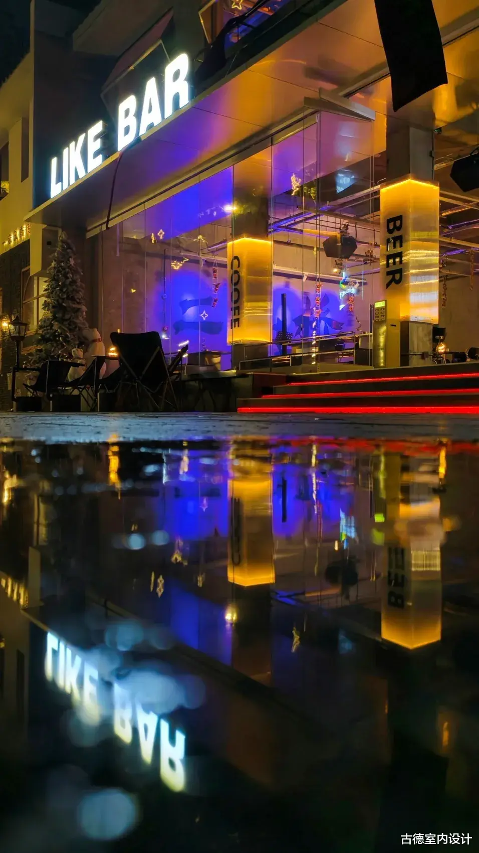 © 陈灏舟、冼科吉们将传统酒吧空间解构为一场未来考古实验:混凝土门头结合脚手架似的金属杆件以粗粝肌理模拟末世建筑残骸,刻意保留的浇筑痕迹与金属构件碰撞出时间侵蚀的氛围感。项目概览LIKE BAR是一个所有四川人都懂的方言——“赖格宝”。之所以起这么一个名字是源于早期与甲方对接时业主提出的蛤蟆的概念,蛤蟆、酒吧,设计团队由此联想到了使用LIKE BAR这一谐音来契合这一概念。成都是一个充满着烟火气的网红城市,既不同于北上广这样的一线城市,又区别于广大西部地区。而二仙桥因为众所周知的原因,“去二仙桥要走成华大道”已是人尽皆知,这本身也是一个十分接地气的地方。JO STUDIO的设计理念将丰富而现代的材料与市井烟火气息融合在一起,最终把传统的“土”的本质与当代表达的“潮”融合在了一起。设计叙事:赛博废墟中的重生该项目位于成都市成华区二仙桥,是一个标准老小区社群商铺的翻修改造,将原有的三家店面合并改造为二仙桥首家威士忌收藏级酒吧,酒吧主入口面向城市次干道地勘路。由于项目处于老旧小区的街区,道路的步行尺度是十分舒适与亲切的,为了契合这样的特点,我们将整个酒吧的临街面都做成了可以旋转打开的落地玻璃门,夏季冬季时关上,春秋时节则可以全部打开,人们可以直接从任意位置自由的进出酒吧,也可以直接坐在窗下的台阶上,看着过往的行人与车辆,在快速的都市生活中小憩。这样我们通过打破原有场地固有的边界感,营造出更为亲切的社群氛围。
