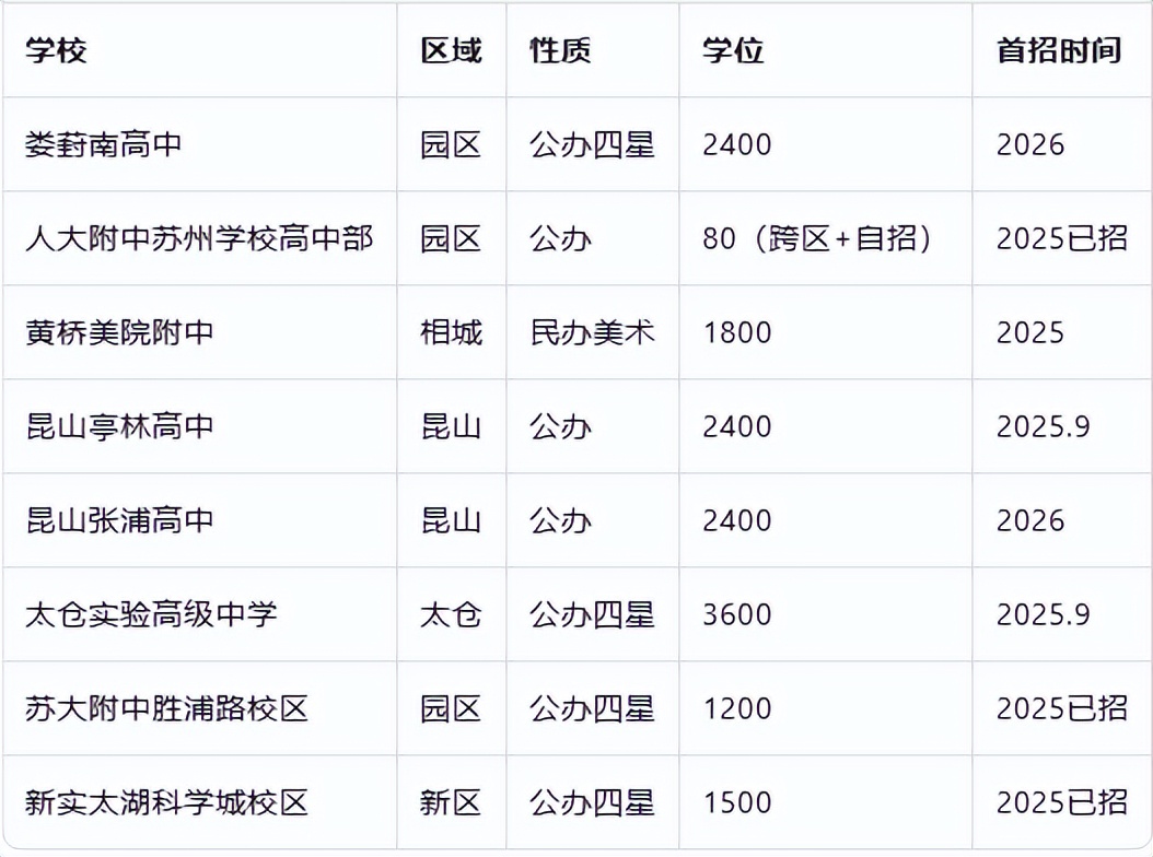 合计:仅上表就新增1.6万+学位,还没算吴县浒关、苏州中学正谊等扩建项目。
