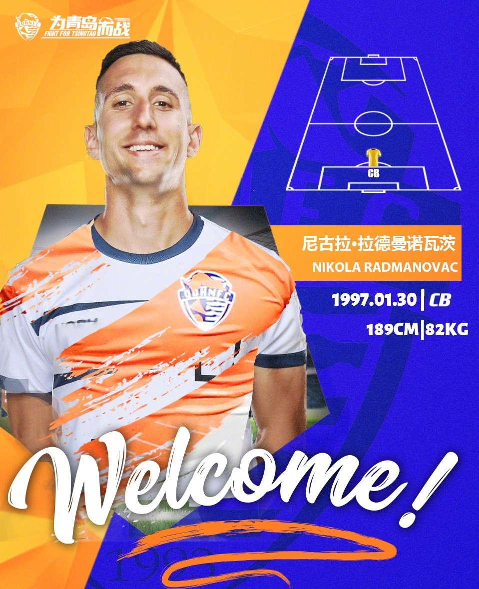 4日晚,青岛海牛在俱乐部官方社交账号上发布公告,塞尔维亚球员尼古拉-拉德曼诺瓦茨正式加盟球队,他将身披26号球衣代表球队参赛。现年27岁的拉德曼诺瓦茨场上司职中卫,此前在塞尔维亚多支球队效力。青岛海牛介绍称,其职业生涯出场次数接近200场,比赛经验丰富。