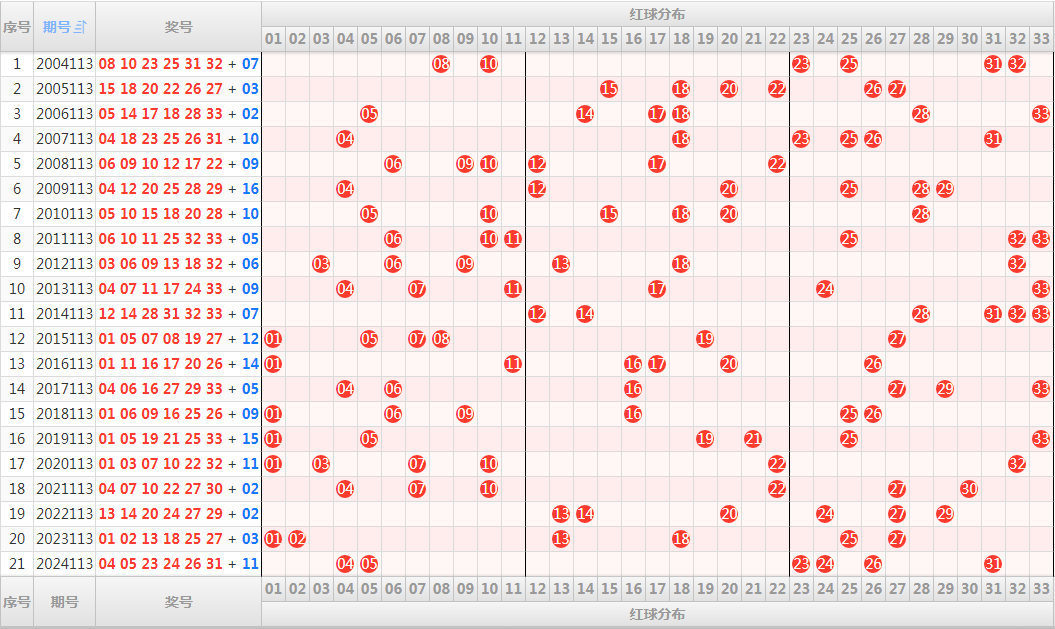六、历史同期,红球开奖号码和走势图(历史数据演示):