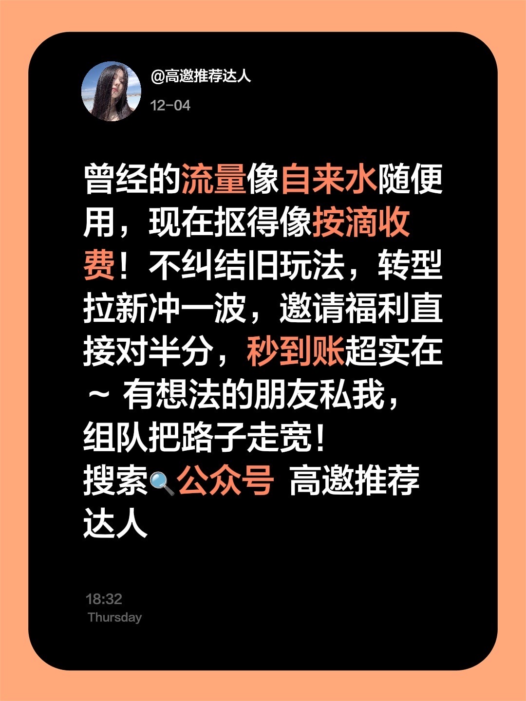 邀请福利直接对半分,秒到账超实在~ 有想法的朋友私我,组队把路子走宽!