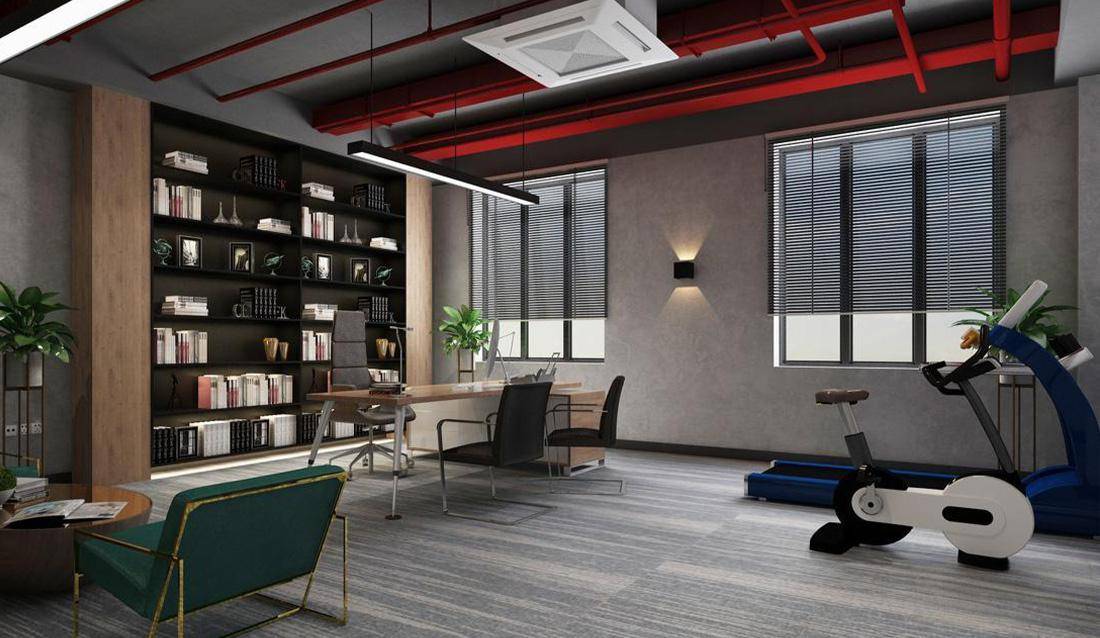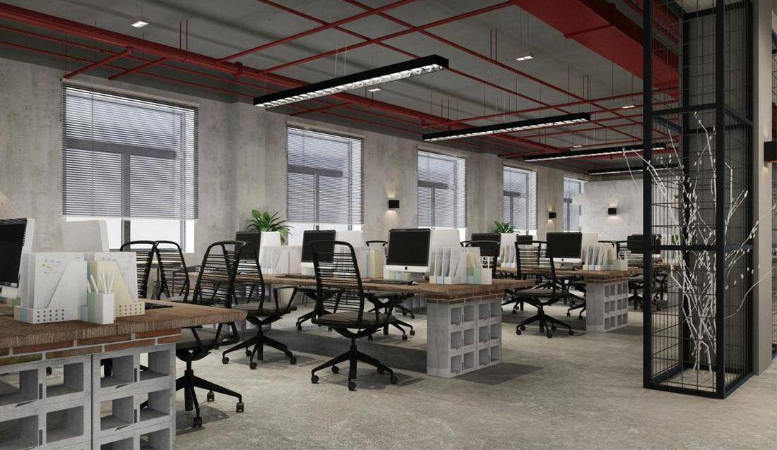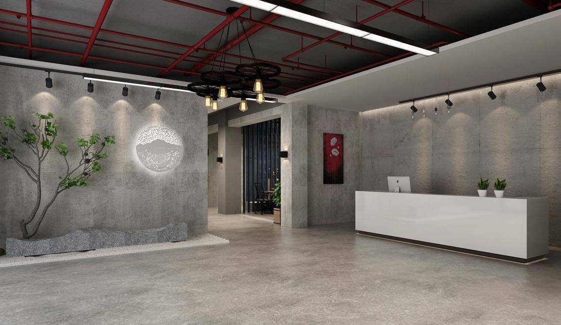 高挑的天花板上安装着裸露的灯具,明亮的灯光与空间中的阴影形成鲜明对比,为整个空间增添了层次感和力量感。