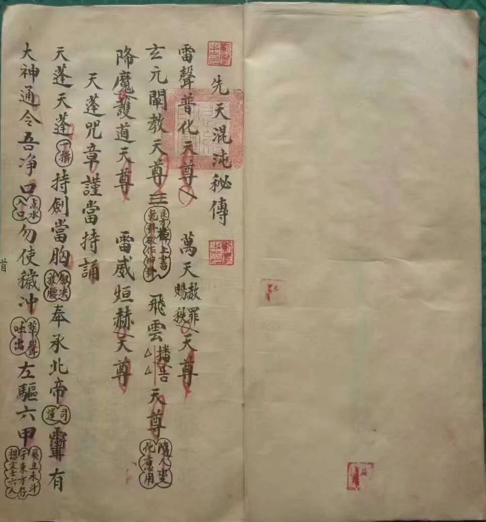 泛黄的宣纸上,墨迹历经八十余载岁月浸染,却依旧清晰可辨。这本民国三十五年由刘载福亲手抄录的《先天混沌秘传》混炼科册,以 61 筒子页、122 页的篇幅,悄然封存着道教雷法的千年奥秘。作为现存罕见的道教秘法手抄孤本,它早已超越古籍范畴,化身承载华夏神秘文化的 “活化石”,引得无数藏家与研究者竞相探寻。