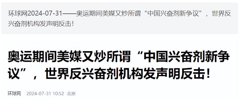 美国曾多次指责中国运动员服用兴奋剂,还拿出陈年旧事,炒作酒店食物污染。