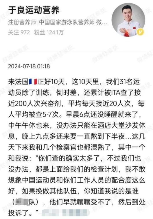 中国游泳队在比赛前已经配合了所有检查,但现在赛程过半,美国又开始不安分了。