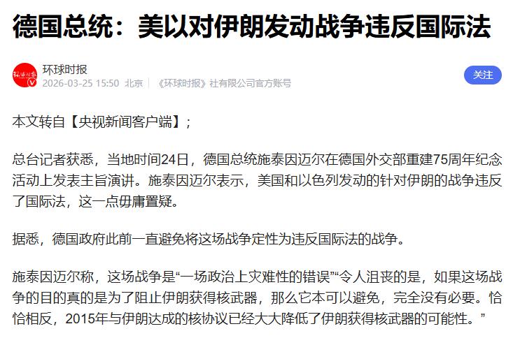真正让整个局面出现质变的,是3月25日德国总统施泰因迈尔的一番话。