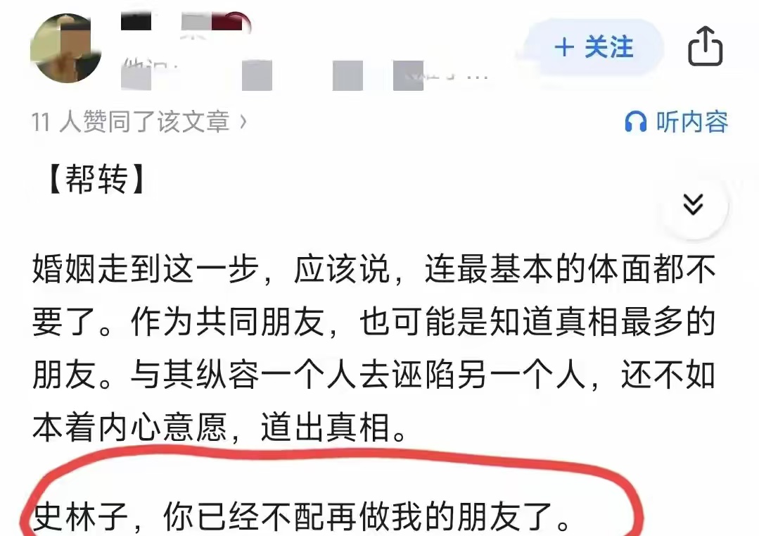 这位既是喻恩泰的好友,也是史林子的好友,他出来发声并曝光了史林子7大出轨证据。指责史林子不该昧着良心去污蔑喻恩泰,她不配做自己的朋友。